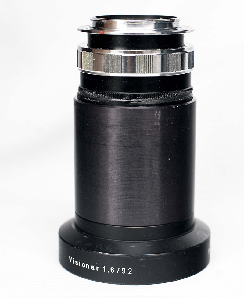 Rathenower Optische Werke (ROW) Visionar 92mm f/1.6, later sold by Zeiss, has a back focus distance long enough to fit a helicoid when adapting to Evil. A thinner helicoid would make it fit SLRs as well, but would result in a disappointingly far close focus distance. 2-component epoxy made for a surprisingly sturdy connection despite no mechanical aids like threaded adapters. Just never forget to support both the lens and the camera!