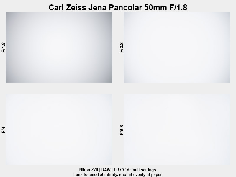Light fall-off is typical for a lens with these specifications. It is noticeable wide open, improves significantly when stopping down one stop to f/2.8, and is only visible in homogeneous scenes such as snow landscapes. From f/4 onward, it becomes negligible.