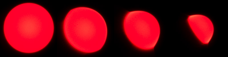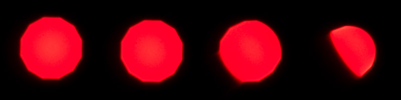 So in the following comparison we move from the center (left) to the extreme corner (right) and see how the shape of the light circle changes.