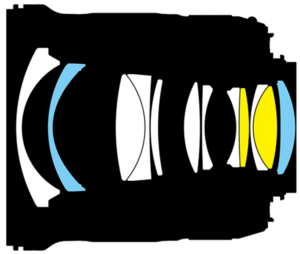 The optical design features two aspherical elements which can lead to faint onion ring structures.
