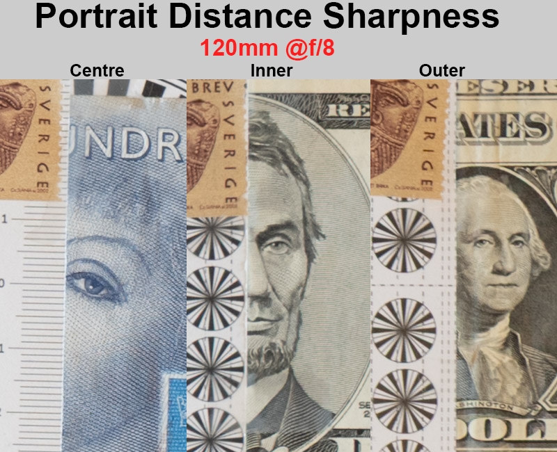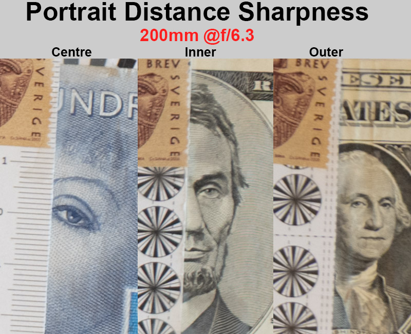 Excellent sharpness at all focal lengths up to 120mm. At 200mm we can see the image softens at its maximum aperture, becomes good at f/8, and very good at f/11.