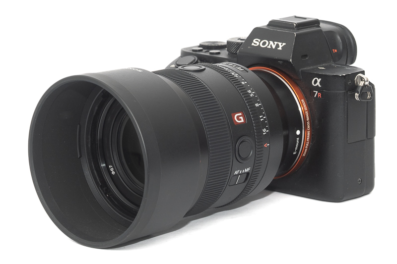 Sony FE 50mm 1.4 GM with hood attached on Sony A7rII