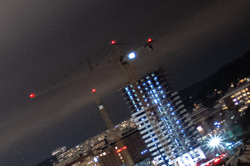 Second, we can see that the focus point shifts farther away when stopping down (compare the f/4 shot with the refocused f/4 shot). This is a clear sign of what we suspected earlier: spherical aberration.