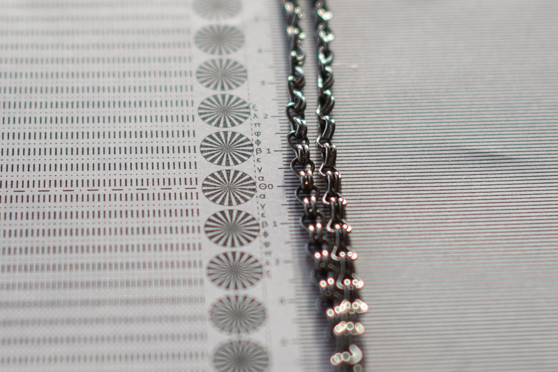 This test reveals two things. First, there is some longitudinal chromatic aberration wide open, which improves when stopping down to f/2 but does not disappear completely. By f/2.8 it is reduced to a very low level that won’t be noticeable in most practical situations, and it is completely gone by f/4.