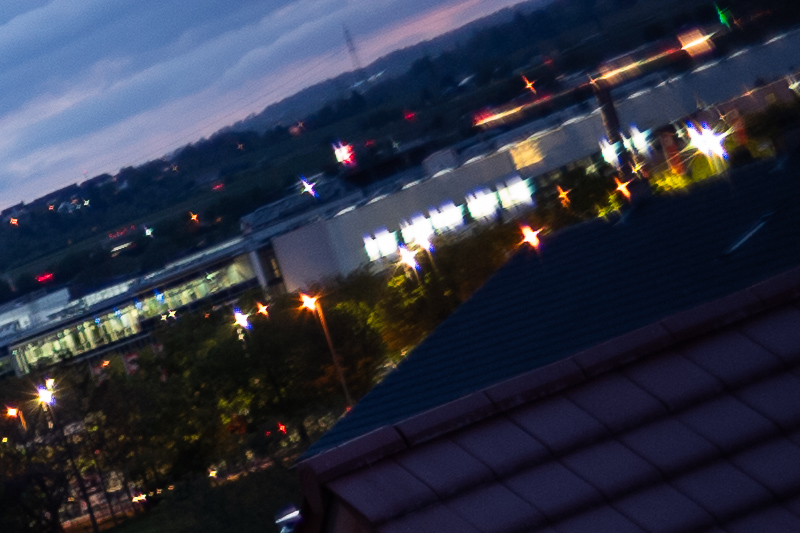 The bokeh balls look nice, with no trace of onion rings, soft transitions, and even illumination. They do show some minor color fringing and take on a moderate cat’s-eye shape toward the corners, but neither effect is overly distracting. More concerning is that while the bokeh balls have soft edges in the center, some of them become double-edged toward the frame edges and corners.
