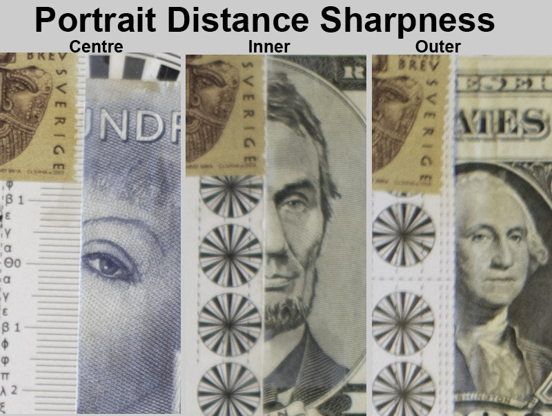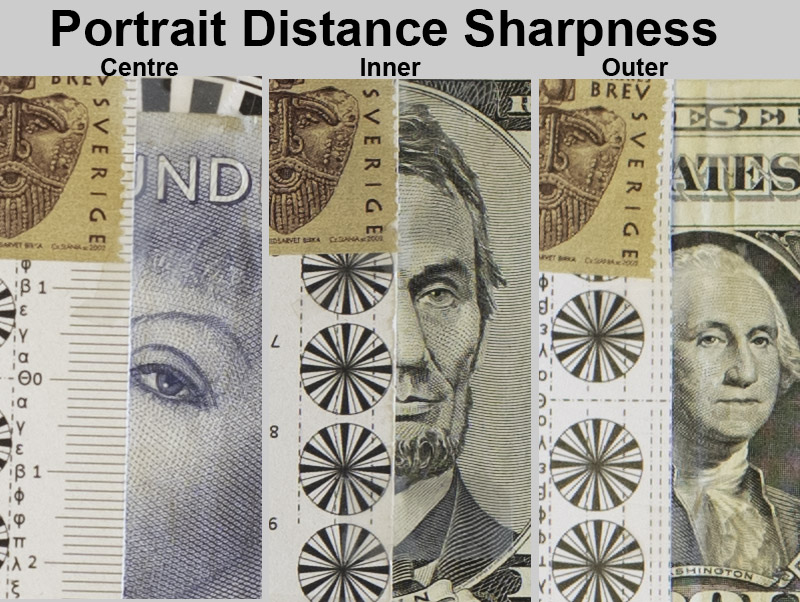Let’s look at the points of interest for portraits at the portrait distance: the very center, the center’s inner periphery (1/3 rule intersection), and the center’s outer periphery (1/4th intersection).