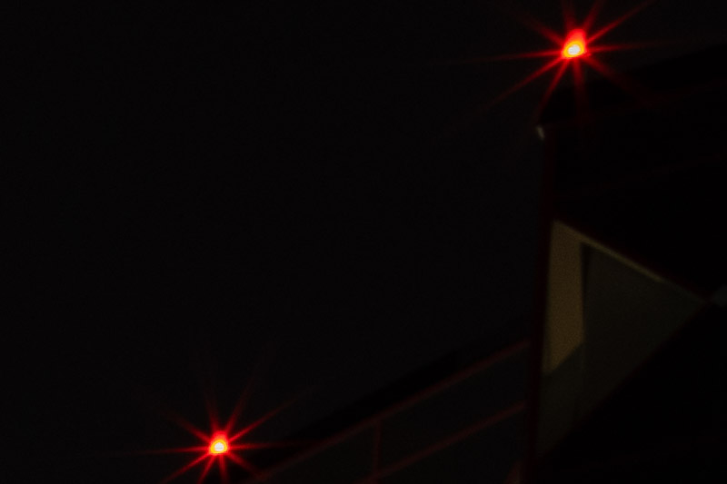 For the infinity sharpness test, we look at three areas of the image, centre, mid-frame, and corner, see highlighted areas in the image below!